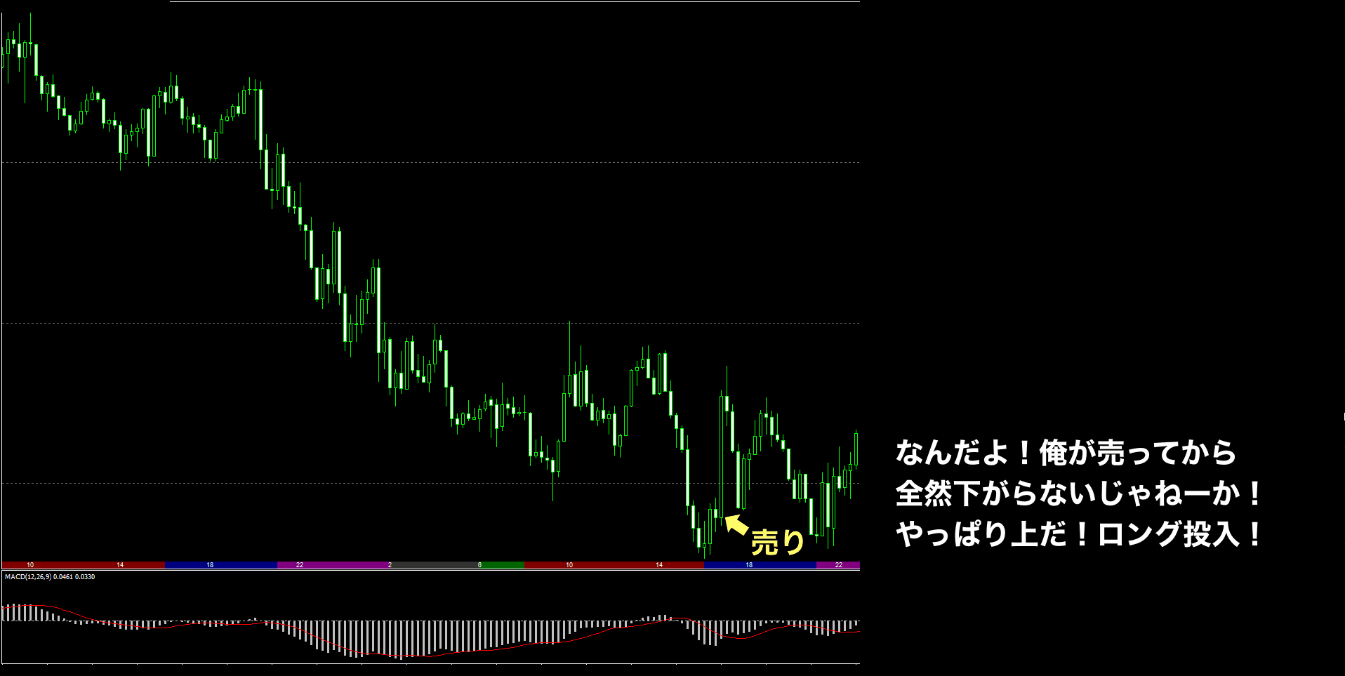 損切り → 悔しい!取り返したい! → 根拠の薄いエントリー → さらに負ける → 以下ループ…