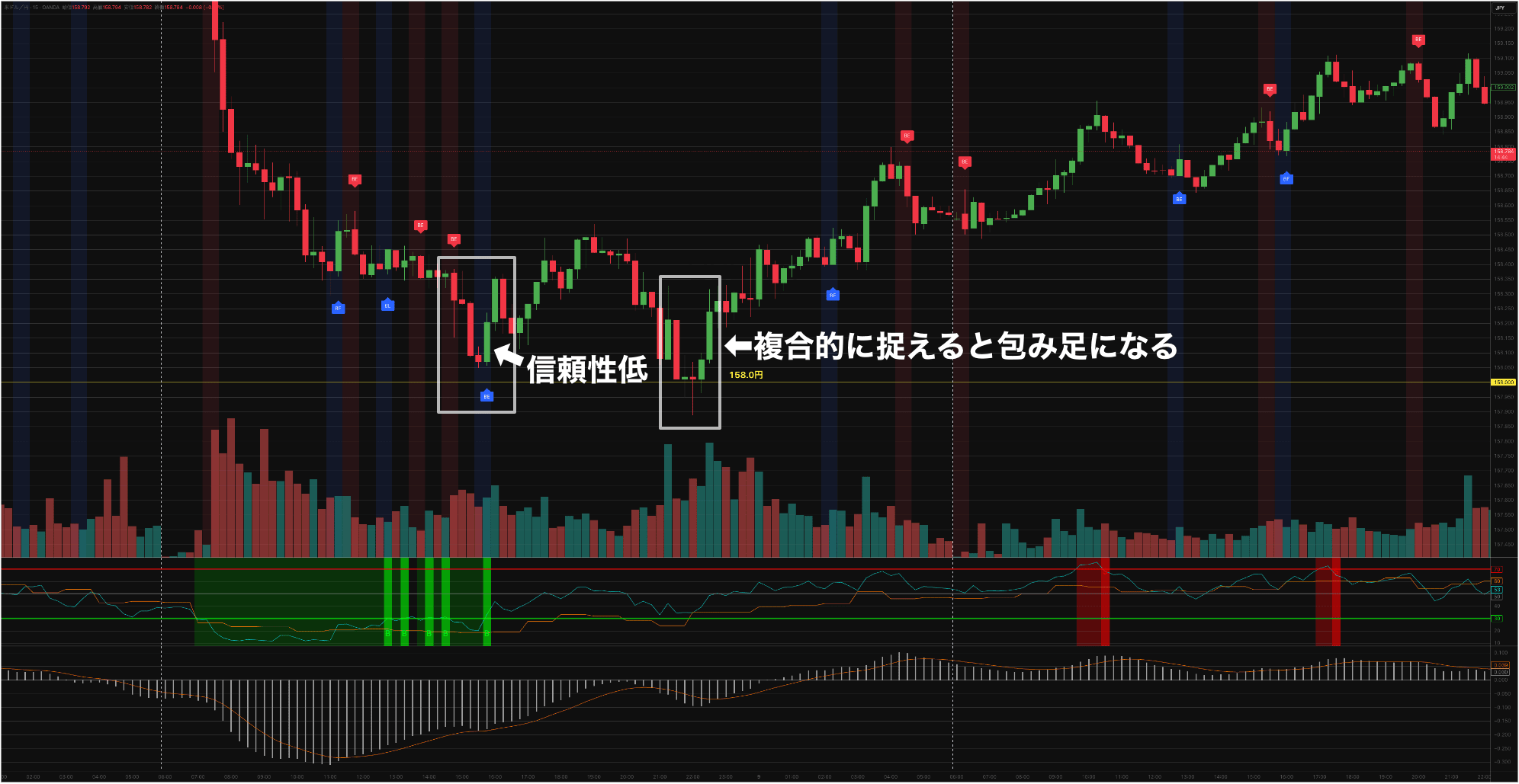 上記の左側で包み足が出ていますが、正直ここの信頼性はあまり高くありません。